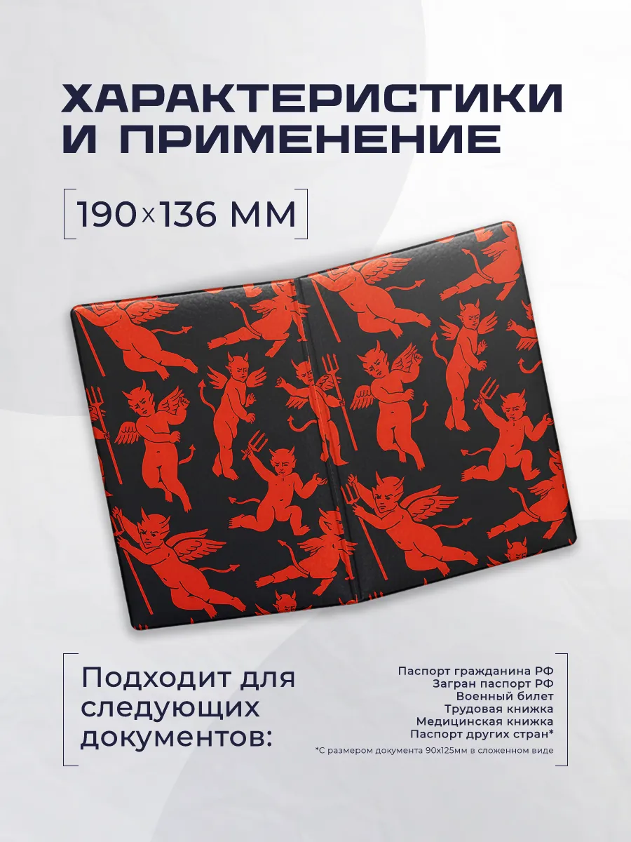 Эта обложка для паспорта совмещает защиту и стиль: она из эко-кожи, долговечна и имеет яркий принт в духе Stickerboss. Дизайн дьявол красный выделяет вашего персонажа, а два кармана удобно разместят документы.
