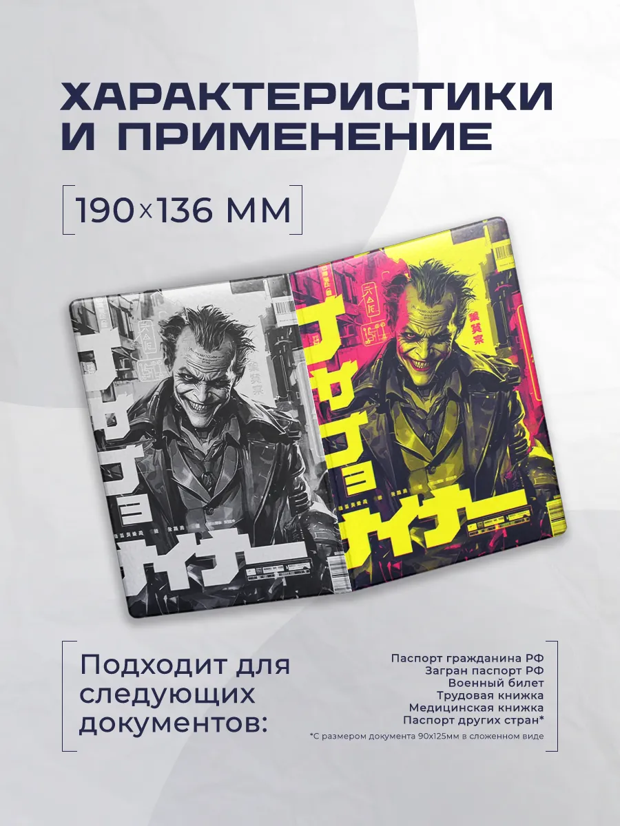 Стильная обложка для паспорта из искусственной кожи в стиле Stickerboss сочетает качественную защиту с ярким дизайном. Модель Джокер выполнена в эко-коже с практичными карманами для документов и уникальным принтом.