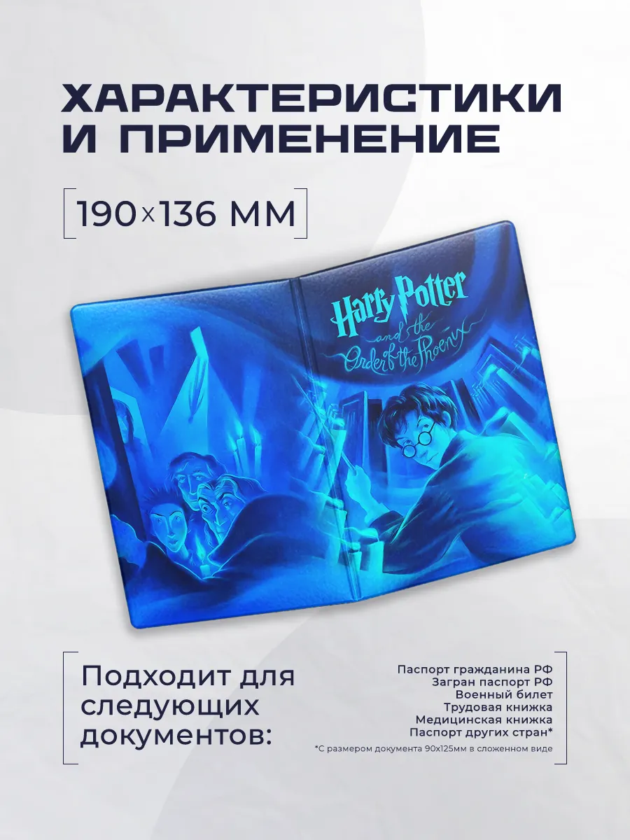 Обложка для паспорта Гарри Поттер из синей эко‑кожи от Stickerboss сочетает стиль и практичность, защищая документ и дополняя образ владельца. Компактна и удобна в повседневном использовании, она легко поместится в сумку или карман.