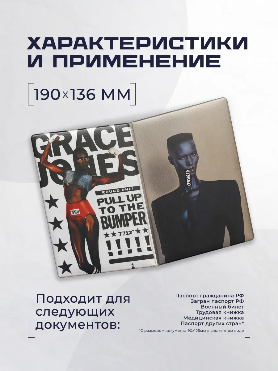 Обложка чехол для паспорта грейс джонс 171 — стильное решение для защиты важных документов из эко-кожи с ярким дизайном Stickerboss. Она добавляет индивидуальности и надёжную защиту паспорта.