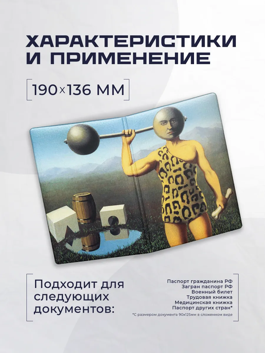 Стильная обложка для паспорта Stickerboss выполнена из эко-кожи и украшена принтом в стиле Магритт. Эко-кожа обеспечивает долговечность и приятное ощущение на ощупь, а качественная печать сохраняет яркость изображения. Обложка входит в Базовую коллекцию Stickerboss и сочетает оригинальный дизайн с практичностью. Это аксессуар, подчёркивающий индивидуальность и защищающий ваши документы в повседневном использовании.