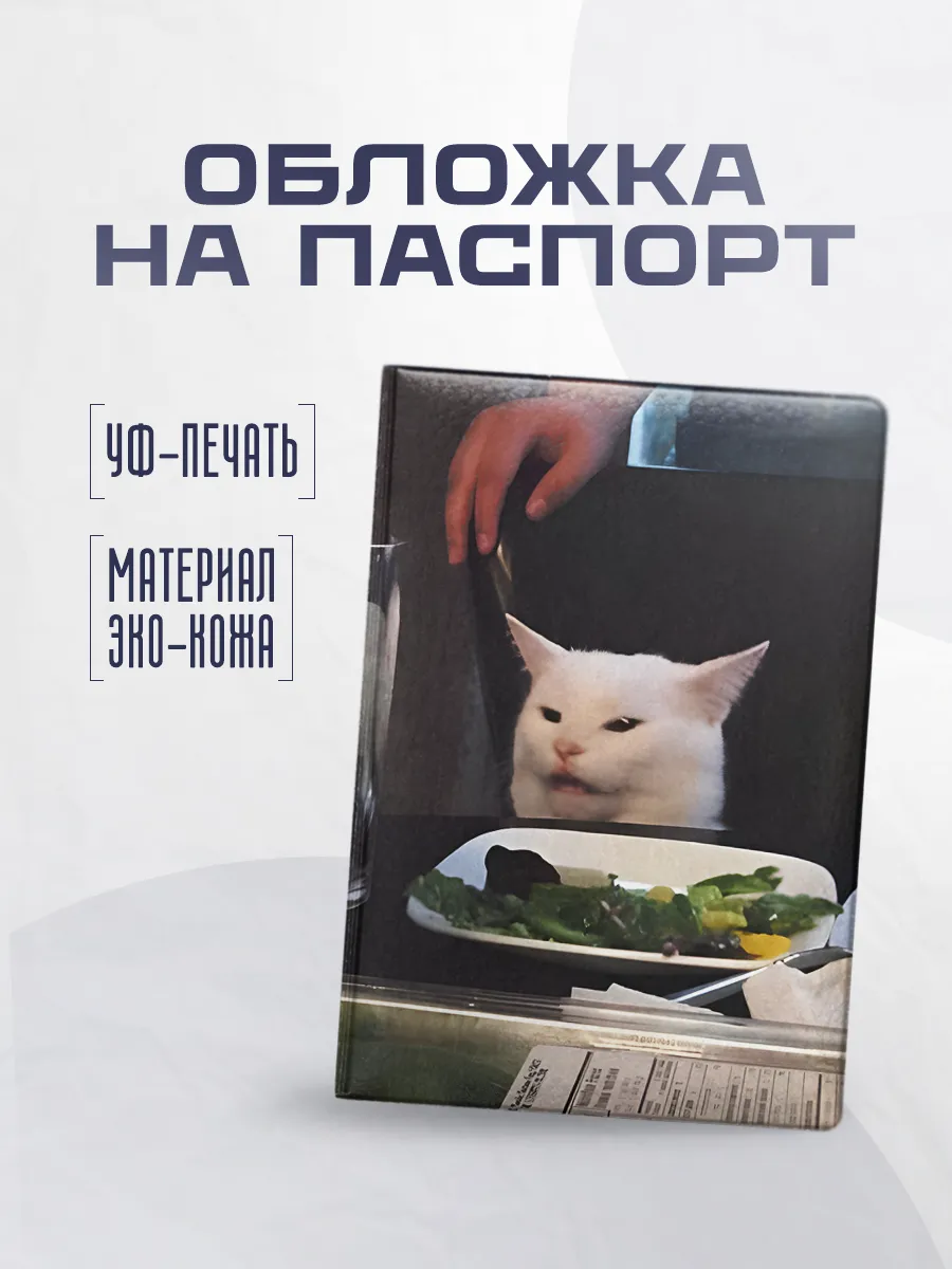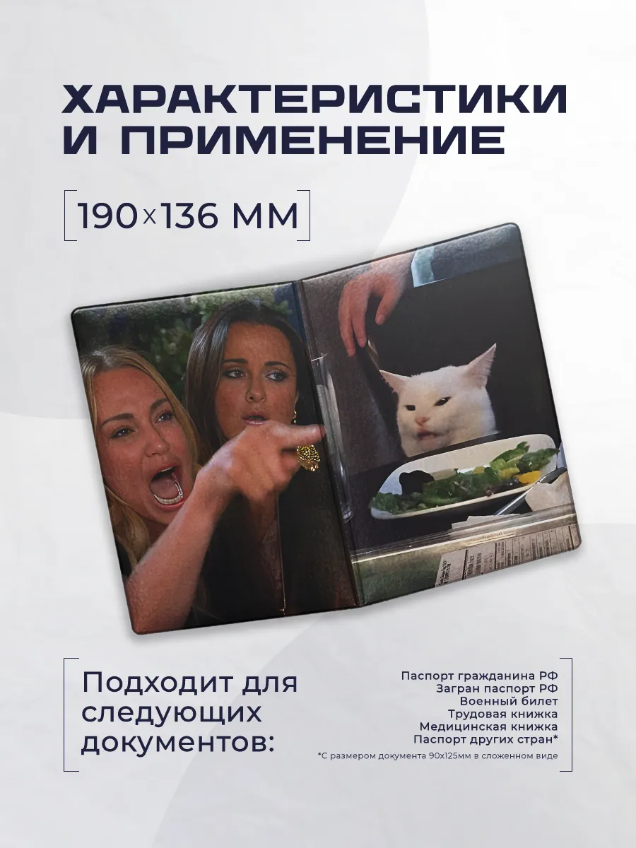 Стильная обложка-чехол на паспорт из эко-кожи с принтом кот мем от Stickerboss сочетает защиту документов и индивидуальный стиль. Практичность и оригинальный дизайн делают этот аксессуар заметным элементом повседневного образа. Обложка изготовлена из искусственной кожи, экокожи и ПВХ, имеет два кармана и без застежки — документы всегда под рукой.