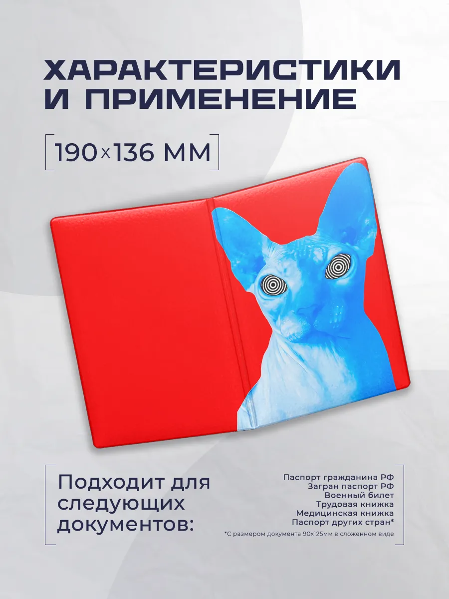 Обложка чехол для паспорта из эко-кожи от Stickerboss сочетает стиль и защиту документов. Яркие принты в лучших традициях Stickerboss делают каждый экземпляр уникальным, а две секции внутри обеспечивают удобное размещение паспорта, СНИЛС и проездного. Обложка выполнена из искусственной кожи, экокожи и ПВХ, застежки нет, поэтому доступ к документам быстрый и простой. Линейка включает оригинальные, шуточные и патриотические рисунки, подчеркивающие индивидуальность владельца. Надежная защита и модный акцент — такое сочетание предлагает базовая коллекция бренда Stickerboss, произведенная в России.