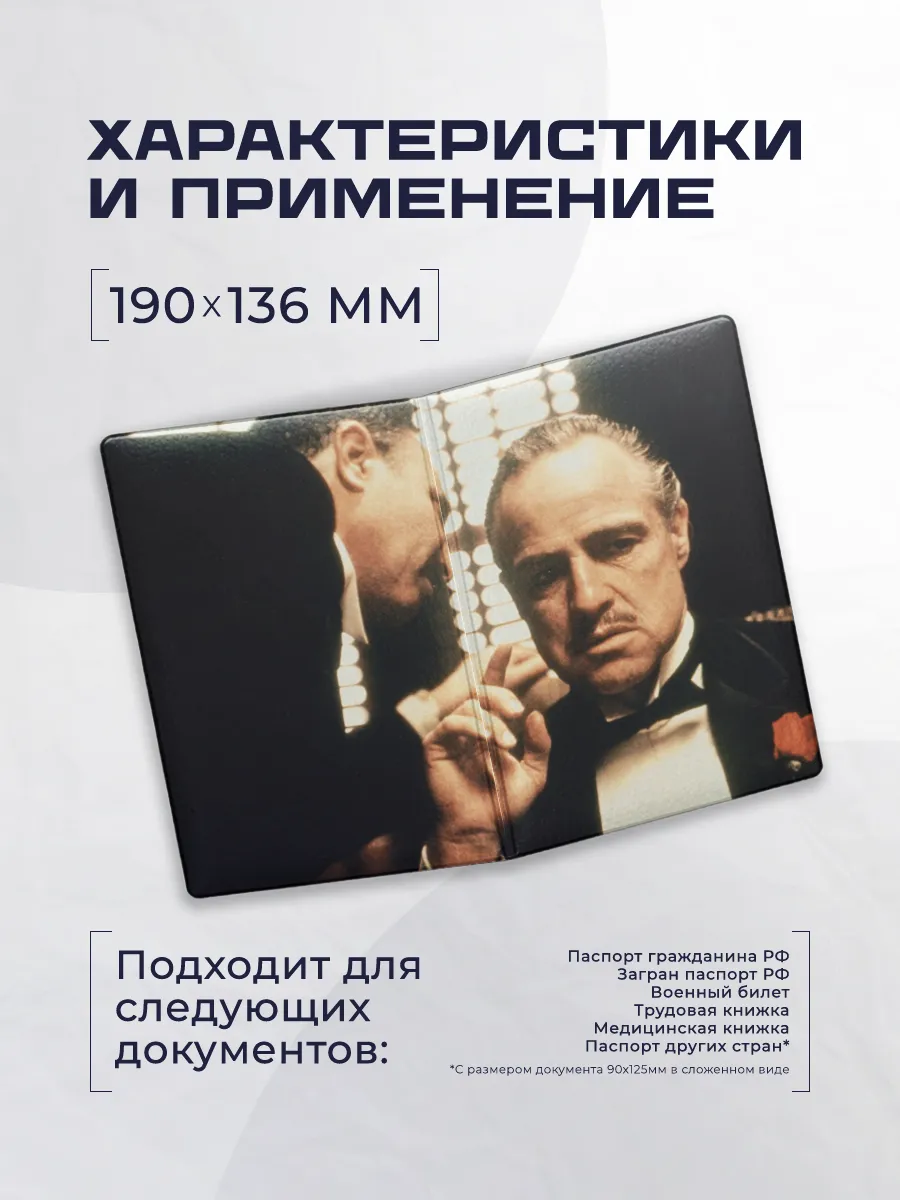 Эта обложка чехол для паспорта из эко-кожи сочетает стиль и защиту. Прямой доступ к документам и долговечный материал делают её удобной в повседневной эксплуатации. Яркий принт крестного отца в духе Stickerboss привнесёт индивидуальность и настроение.