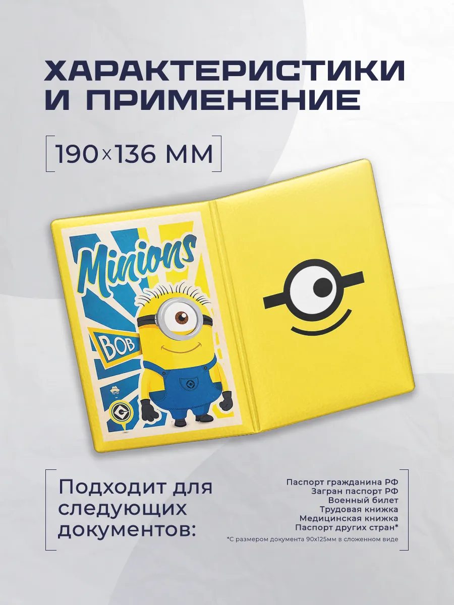 Эта обложка чехол для паспорта Миньон 611 от Stickerboss сочетает оригинальный дизайн и практичную защиту документов. Изготовлена из искусственной кожи и эко-кожи, приятна на ощупь и долговечна. Для удобства доступ к паспорту осуществляется без застежки, а два внутренних кармана позволяют разместить дополнительный проездной или СНИЛС. Такой аксессуар станет ярким акцентом повседневного образа.