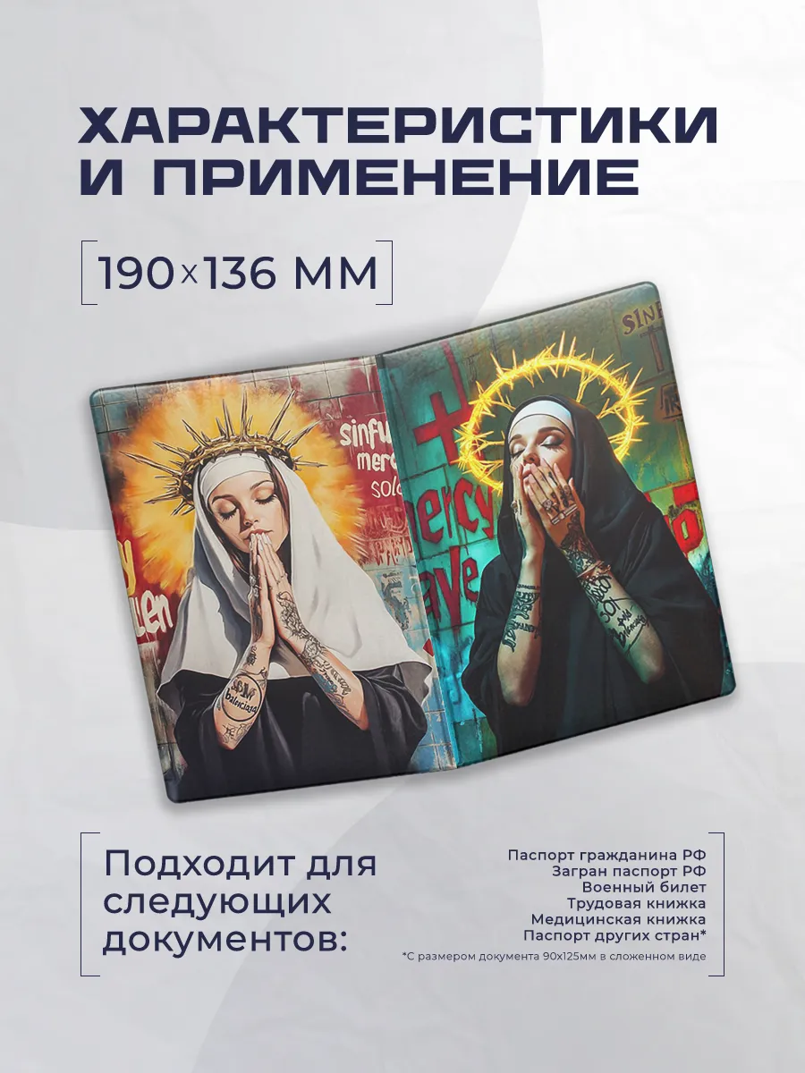 Ширина и высота предмета рассчитаны под стандартный формат паспорта. Обложка отличается легкостью и удобством замены документов, без лишних замков и креплений. Яркий принт добавляет стиль и индивидуальность.
