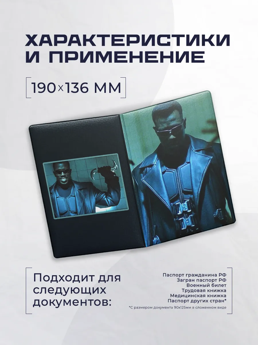 Стильная обложка чехол для паспорта выполнена из эко-кожи и объединяет защиту документов с оригинальным дизайном. Принт с получеловек-полувампиром Блэйд 311 выполнен в духе Stickerboss и подчеркивает индивидуальность владельца, не прибегая к лишним деталям. Обложка легкая, компактная и готова к повседневной эксплуатации.