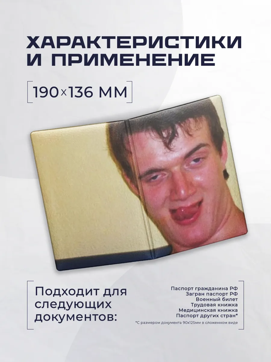 Стильная обложка для паспорта из эко-кожи Stickerboss сочетает качество материалов и оригинальный дизайн. В коллекции встречаются шуточные и патриотические рисунки, в том числе тема пьяного лица мем, которая подчеркивает индивидуальность и добавляет яркости повседневным документам. Обложка двухкарманная, без застежки, с защитой документов и простотой использования.
