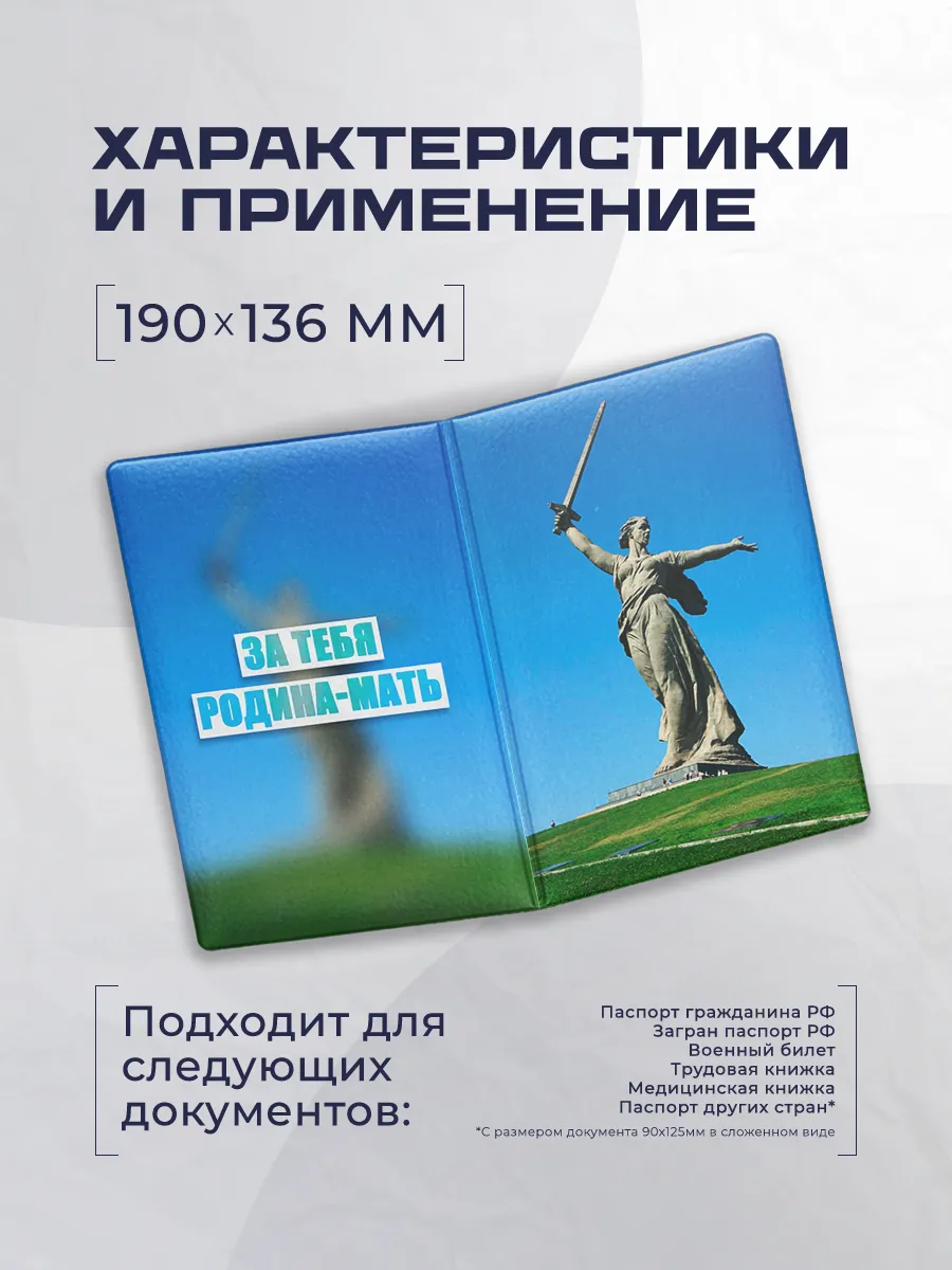 Эта обложка для паспорта сочетает защиту документов и стильный внешний вид. Выполнена из эко-кожи и дополнена ярким патриотичным принтом Родина Мать 771, который делает аксессуар заметным, но универсальным. Конструктивно изделие простое и функциональное: два кармана для документов, отсутствие застежки и компактные размеры, позволяющие носить обложку в сумке или кармане. Базовая коллекция Stickerboss ориентирована на практичных пользователей, которым важна надежная защита и оригинальный дизайн. Обложка подходит как для мужского, так и женского образа и может стать приятным подарком.