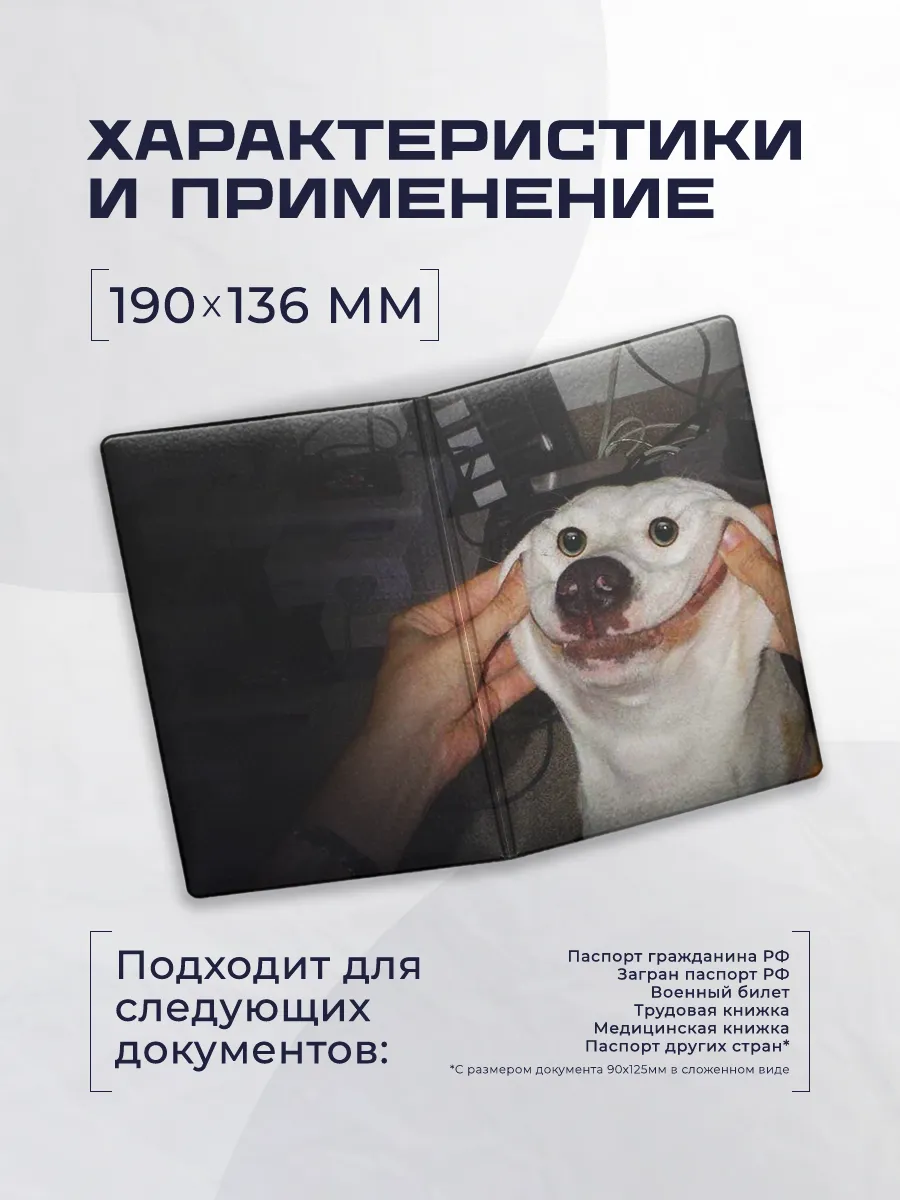 Обложка размером 14 см на 19 см рассчитана на паспорт и дополнительные документы, имеет 2 кармана и застежку отсутствует. В коллекции представлены оригинальные, шуточные и патриотические мотивы, подходит как мужскому, так и женскому образу.