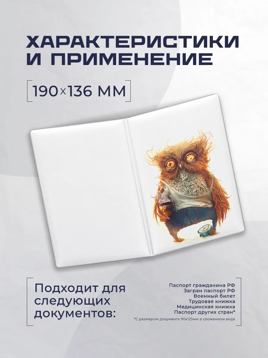 Эта обложка для паспорта из эко-кожи сочетает стиль и функциональность. Яркий принт сонная сова от Stickerboss придает документу индивидуальность, а защитная обложка надежно сохраняет паспорт, СНИЛС и проездной в одном компактном кармане. Изготавливается в России и подходит как подарок близким.
