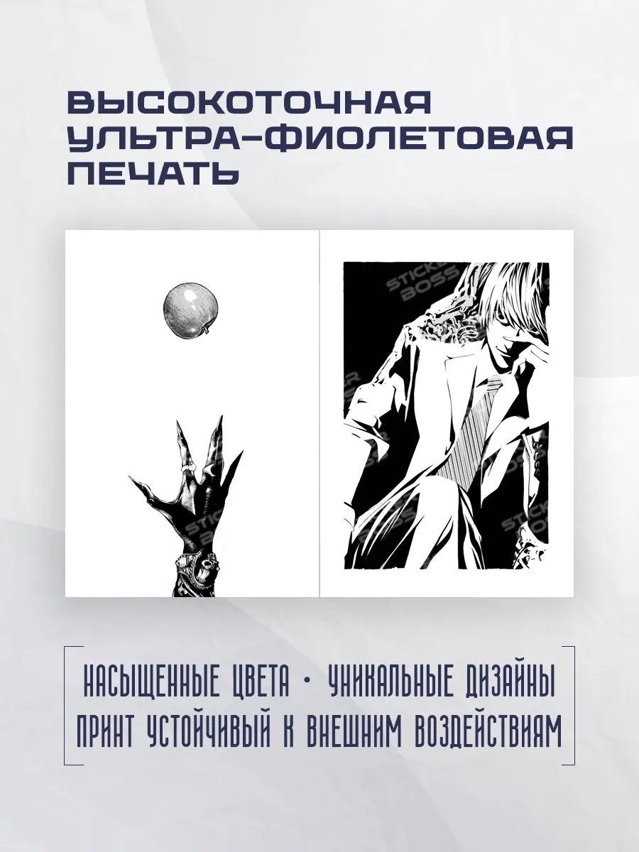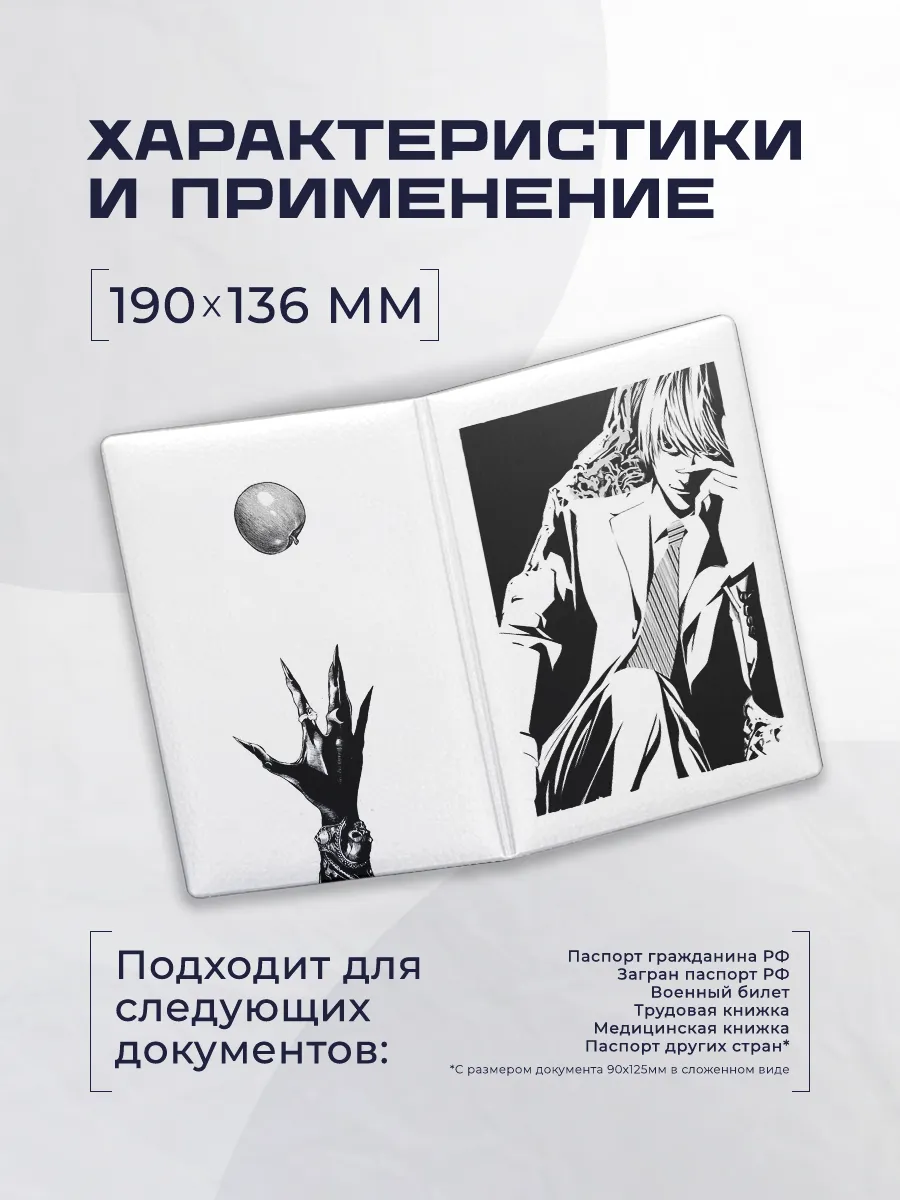 Стильная обложка для паспорта из эко-кожи сочетает защиту документа и оригинальный дизайн. Яркие принты в духе Stickerboss, включая тему Death Note, подчеркивают индивидуальность и делают аксессуар запоминающимся.