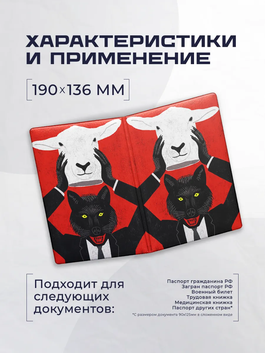 Стильная и функциональная обложка для паспорта из эко-кожи сочетает защиту и оригинальный дизайн. Принт с изображением волка в овечьей шкуре придает аксессуару характер и индивидуальность, подходя как для мужского, так и для женского стиля. Этот чехол выполнен из материалов высокой износостойкости и рассчитан на ежедневное использование.