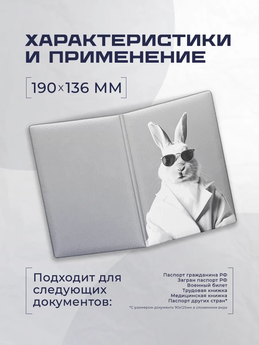 Обложка чехол для паспорта Заяц 598 сочетает стиль и практичность, предлагая надежную защиту ваших документов и запоминающийся внешний вид. Изготовленная из искусственной кожи и эко-кожи с элементами ПВХ, она легкая и долговечная, не утяжеляет повседневный набор и подходит под различные образы. Без застежки обеспечивает быстрый доступ к паспорту и дополнительной информации на страницах.