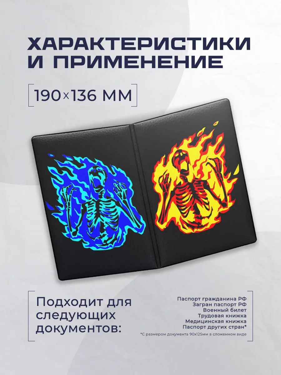 | Назначение обложки | для паспорта, для военного билета, для медицинской книжки, для трудовой книжки |