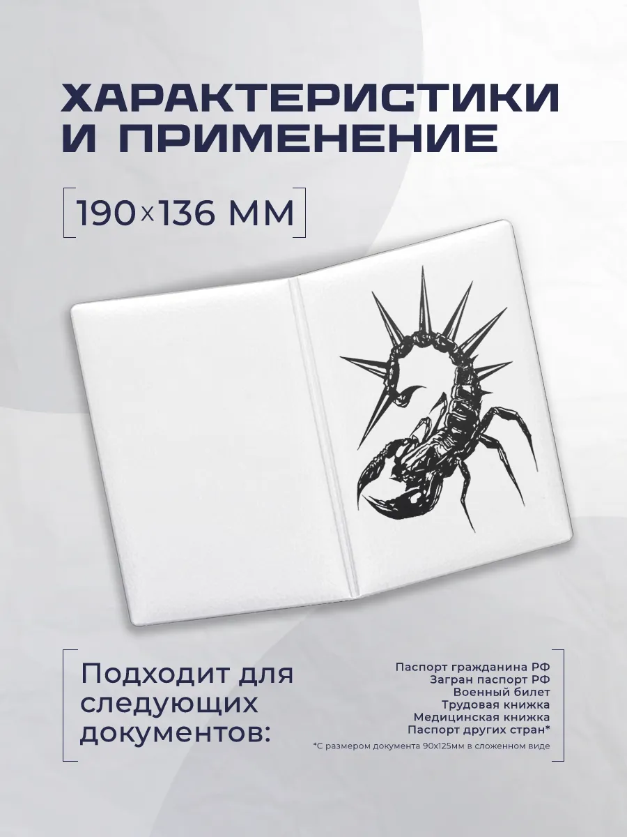 Стильная обложка на паспорт скорпион из эко-кожи от Stickerboss сочетает яркий дизайн с практичностью. Мягкие материалы и ровная посадка обеспечивают защиту документов и стильный акцент в повседневной жизни.