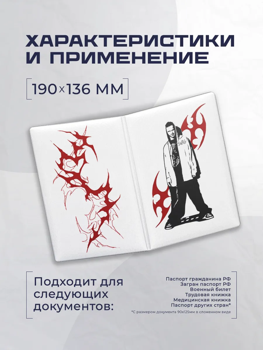 | Назначение обложки | для паспорта, для военного билета, для медицинской книжки, для трудовой книжки |