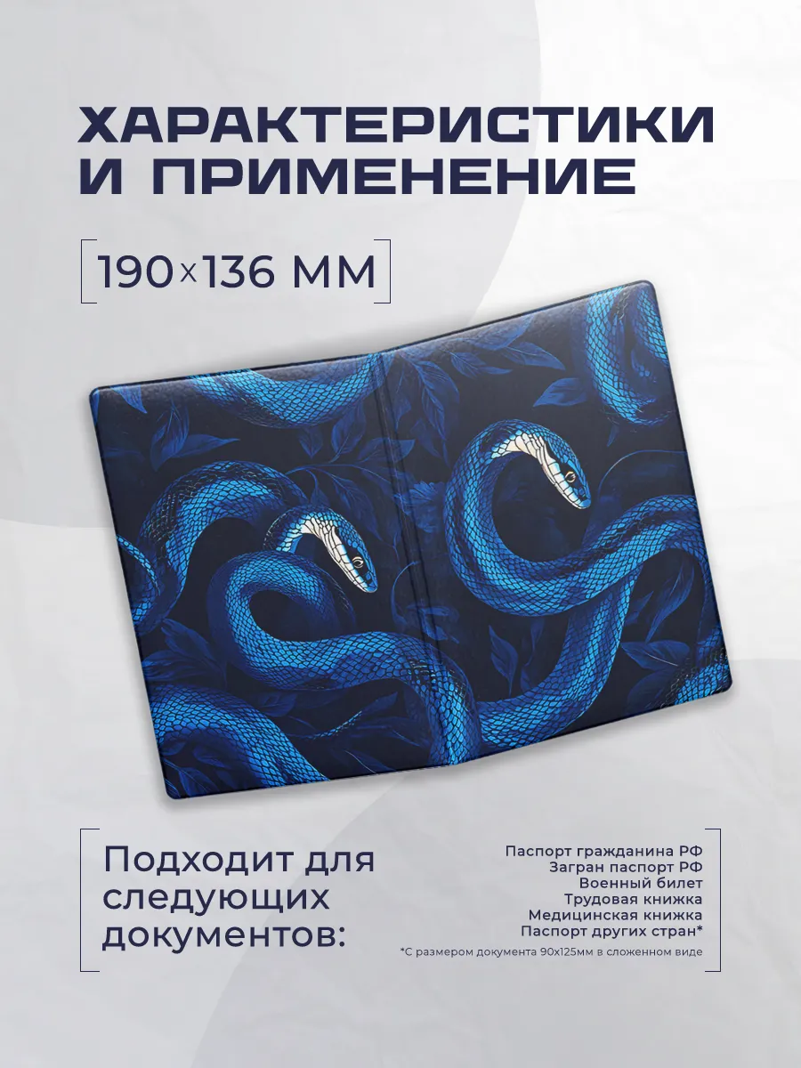 Обложка на паспорт змея от Stickerboss выполнена из эко-кожи и предназначена для защиты паспорта и документов, сохраняя стиль. В дизайне присутствует принт с изображением змеи, который подчеркивает индивидуальность владельца.