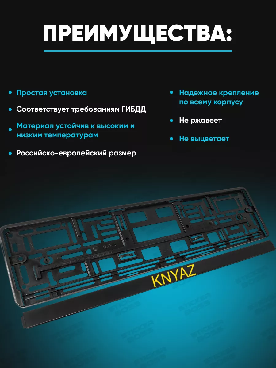 Рамка для ГОС номера автомобиля 52х13х1 см универсальная, выполнена из качественного и надежного ABS пластика. Она подойдет практически для любой марки автомобиля. На лицевой стороне выполнена качественная печать методом УФ печати, которая устойчива к любым погодным условиям, не выгорает со временем и не выцветает. Принты и надписи выполнены в лучших традициях Бренда Stickerboss, что способствует привлечению все большего количества восторженных взглядов к вашему авто. Наши рамки для машины будут выполнять не только свою основную функцию по креплению номерного знака, но и добавит стиля вашей машине. Ее легко установить: крепление надежное, плотно прилегает к бамперу и прослужит Вам длительное время. Такой автотовар - отличная идея для подарка другу! Автомобильному аксессуару не страшны дождь, снег и перепады температур. Конструкция изделия соответствует требованиям ГИБДД, имеет Российско-европейский размер. Вы можете выбрать любую из рамок с надписью на свой вкус, перейдя в каталог магазина Stickerboss! Также от нашего бренда можно приобрести разные товары для авто.