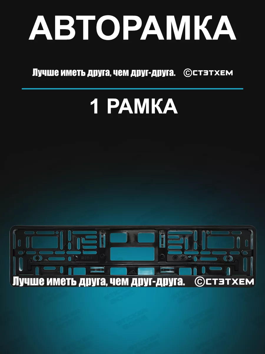 Рамка для ГОС номера автомобиля 52х13х1 см универсальная, выполнена из качественного и надежного ABS пластика. Она подойдет практически для любой марки автомобиля. На лицевой стороне выполнена качественная печать методом УФ печати, которая устойчива к любым погодным условиям, не выгорает со временем и не выцветает. Принты и надписи выполнены в лучших традициях Бренда Stickerboss, что способствует привлечению все большего количества восторженных взглядов к вашему авто. Наши рамки для машины будут выполнять не только свою основную функцию по креплению номерного знака, но и добавит стиля вашей машине. Ее легко установить: крепление надежное, плотно прилегает к бамперу и прослужит Вам длительное время. Такой автотовар - отличная идея для подарка другу! Автомобильному аксессуару не страшны дождь, снег и перепады температур. Конструкция изделия соответствует требованиям ГИБДД, имеет Российско-европейский размер. Вы можете выбрать любую из рамок с надписью на свой вкус, перейдя в каталог магазина Stickerboss! Также от нашего бренда можно приобрести разные товары для авто.