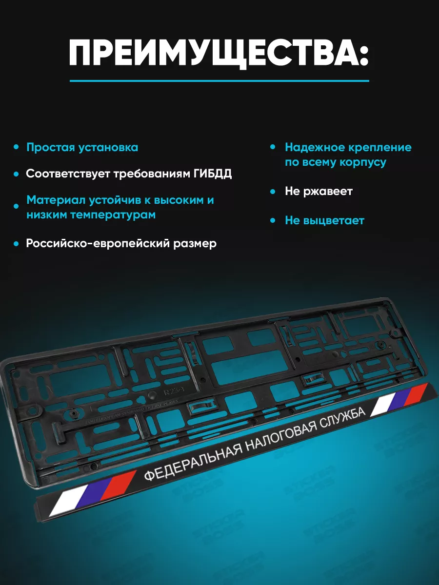 Рамка для ГОС номера автомобиля 52х13х1 см универсальная, выполнена из качественного и надежного ABS пластика. Она подойдет практически для любой марки автомобиля. На лицевой стороне выполнена качественная печать методом УФ печати, которая устойчива к любым погодным условиям, не выгорает со временем и не выцветает. Принты и надписи выполнены в лучших традициях Бренда Stickerboss, что способствует привлечению все большего количества восторженных взглядов к вашему авто. Наши рамки для машины будут выполнять не только свою основную функцию по креплению номерного знака, но и добавит стиля вашей машине. Ее легко установить: крепление надежное, плотно прилегает к бамперу и прослужит Вам длительное время. Такой автотовар - отличная идея для подарка другу! Автомобильному аксессуару не страшны дождь, снег и перепады температур. Конструкция изделия соответствует требованиям ГИБДД, имеет Российско-европейский размер. Вы можете выбрать любую из рамок с надписью на свой вкус, перейдя в каталог магазина Stickerboss! Также от нашего бренда можно приобрести разные товары для авто.