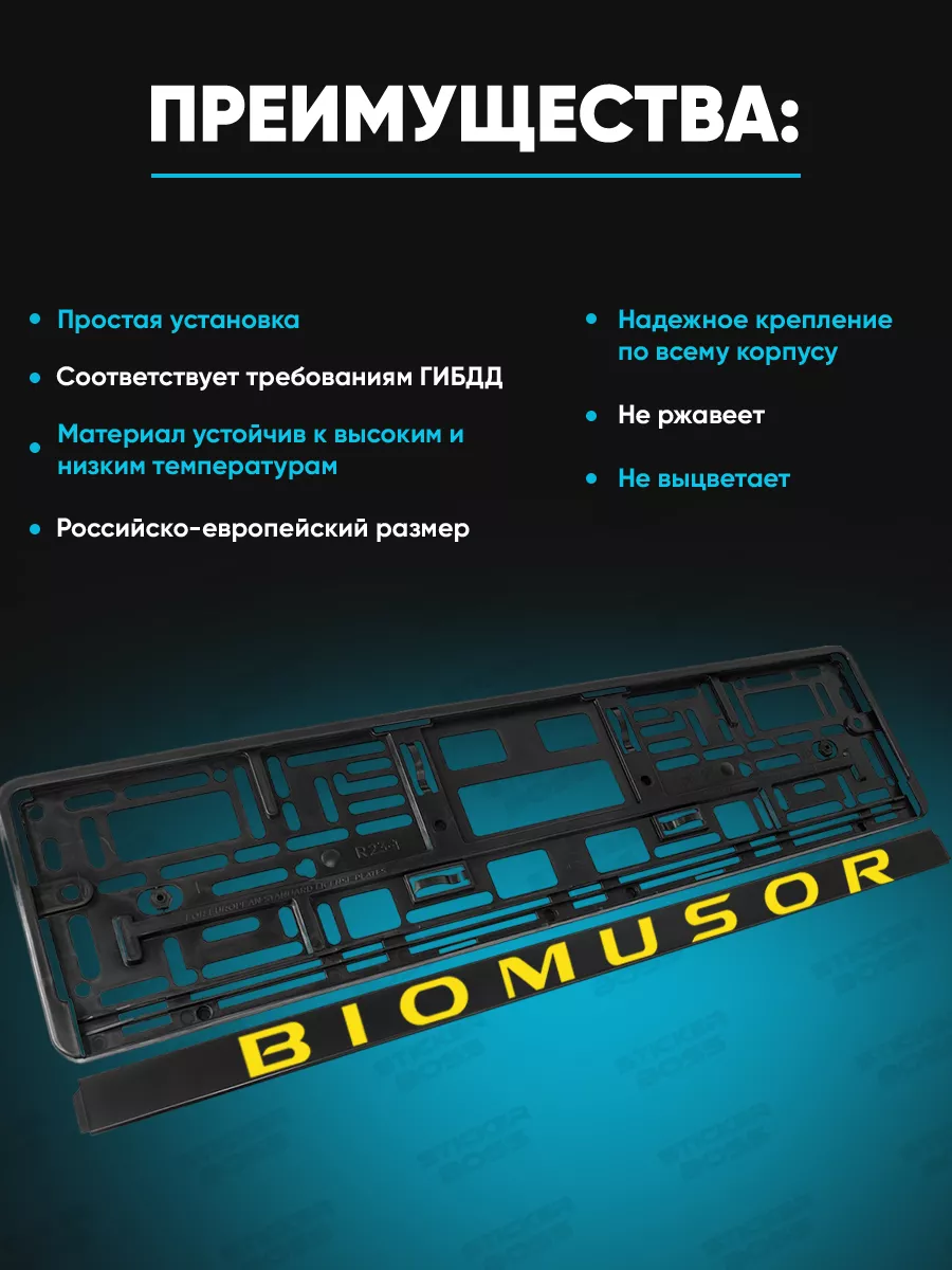 Рамка для ГОС номера автомобиля 52х13х1 см универсальная, выполнена из качественного и надежного ABS пластика. Она подойдет практически для любой марки автомобиля. На лицевой стороне выполнена качественная печать методом УФ печати, которая устойчива к любым погодным условиям, не выгорает со временем и не выцветает. Принты и надписи выполнены в лучших традициях Бренда Stickerboss, что способствует привлечению все большего количества восторженных взглядов к вашему авто. Наши рамки для машины будут выполнять не только свою основную функцию по креплению номерного знака, но и добавит стиля вашей машине. Ее легко установить: крепление надежное, плотно прилегает к бамперу и прослужит Вам длительное время. Такой автотовар - отличная идея для подарка другу! Автомобильному аксессуару не страшны дождь, снег и перепады температур. Конструкция изделия соответствует требованиям ГИБДД, имеет Российско-европейский размер. Вы можете выбрать любую из рамок с надписью на свой вкус, перейдя в каталог магазина Stickerboss! Также от нашего бренда можно приобрести разные товары для авто.