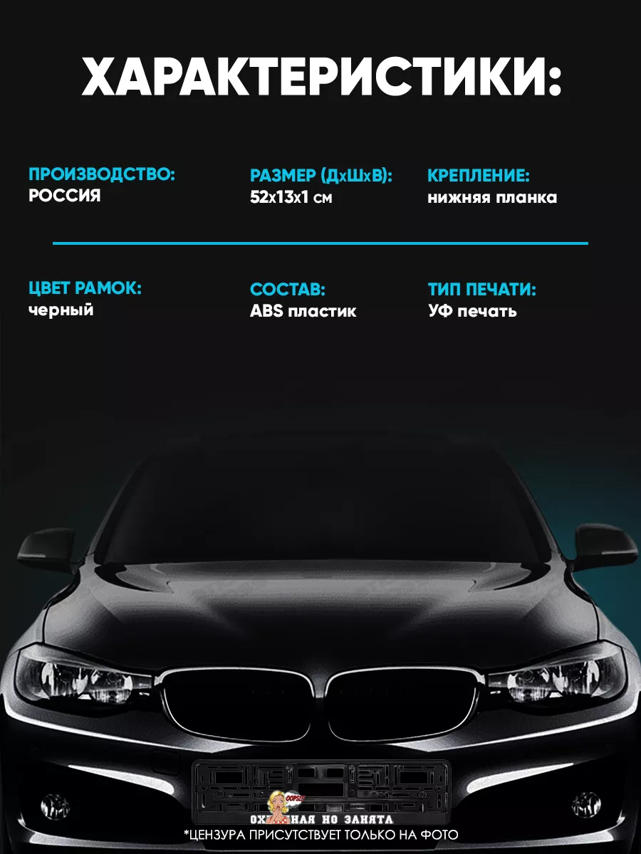 Рамка для ГОС номера автомобиля 52х13х1 см универсальная, выполнена из качественного и надежного ABS пластика. Она подойдет практически для любой марки автомобиля. На лицевой стороне выполнена качественная печать методом УФ печати, которая устойчива к любым погодным условиям, не выгорает со временем и не выцветает. Принты и надписи выполнены в лучших традициях Бренда Stickerboss, что способствует привлечению все большего количества восторженных взглядов к вашему авто. Наши рамки для машины будут выполнять не только свою основную функцию по креплению номерного знака, но и добавит стиля вашей машине. Ее легко установить: крепление надежное, плотно прилегает к бамперу и прослужит Вам длительное время. Такой автотовар - отличная идея для подарка другу! Автомобильному аксессуару не страшны дождь, снег и перепады температур. Конструкция изделия соответствует требованиям ГИБДД, имеет Российско-европейский размер. Вы можете выбрать любую из рамок с надписью на свой вкус, перейдя в каталог магазина Stickerboss! Также от нашего бренда можно приобрести разные товары для авто.