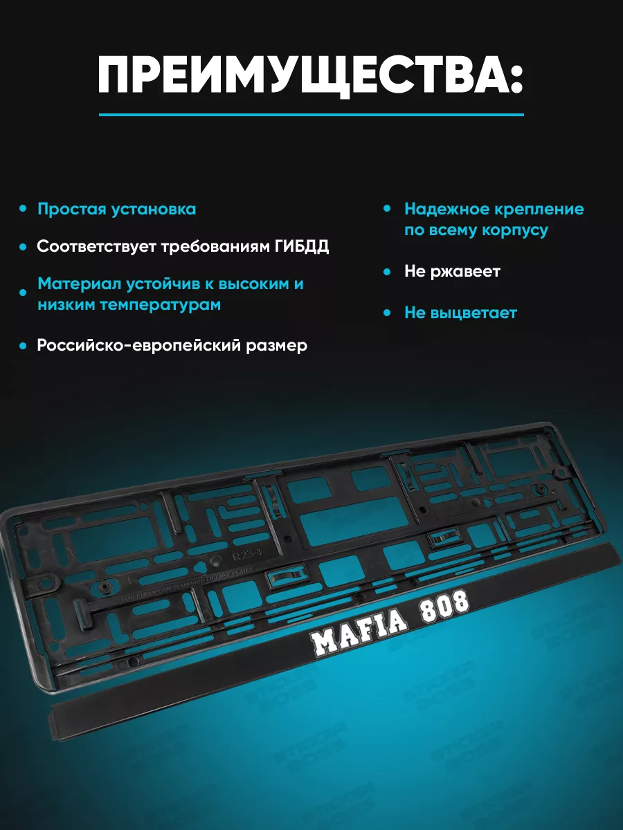 Рамка предназначена для крепления государственного регистрационного номера автомобиля и подходит для большинства марок. Она не только удерживает номер, но и придает завершенный вид кузову.