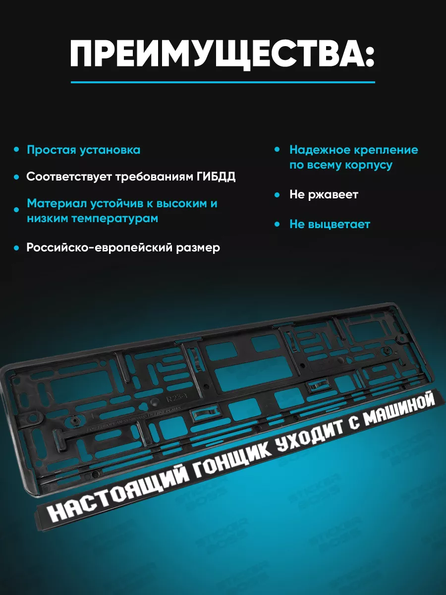 Универсальная рамка для гос номера из ABS-пластика размером 52x13x1 см обеспечивает надёжность и стильный внешний вид вашего автомобиля. Лицевая сторона выполнена УФ-печатью, которая устойчива к погодным условиям и не выгорает со временем. Принты и надписи выполнены в лучших традициях бренда Stickerboss, что привлекает взгляд и подчёркивает индивидуальность авто.