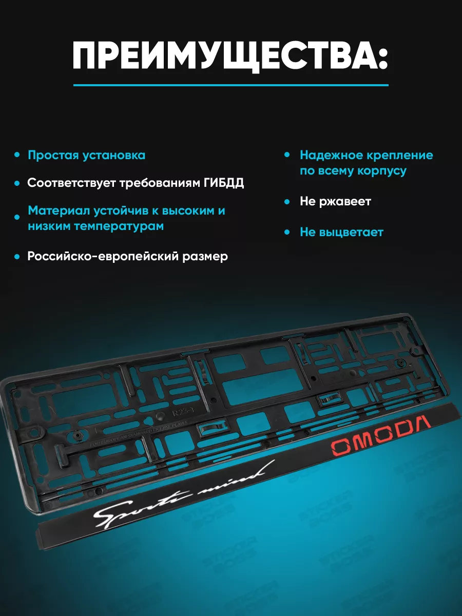 Рамка предназначена для крепления номерного знака на автомобилях и может содержать надпись omoda, что подчёркивает индивидуальность номерного знака. Конструкция соответствует требованиям ГИБДД и имеет Российско-европейский размер.