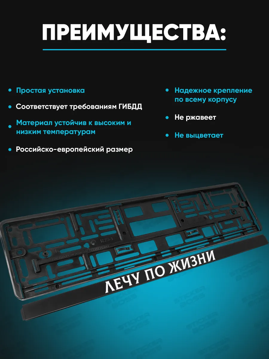 УФ-печать обеспечивает долговечность принтов и надписей без выгорания. Рамка универсальная, подходит для большинства марок автомобилей. Размер соответствует российско-европейскому стандарту, что упрощает использование. Наш бренд Stickerboss подчёркивает стиль вашего авто.