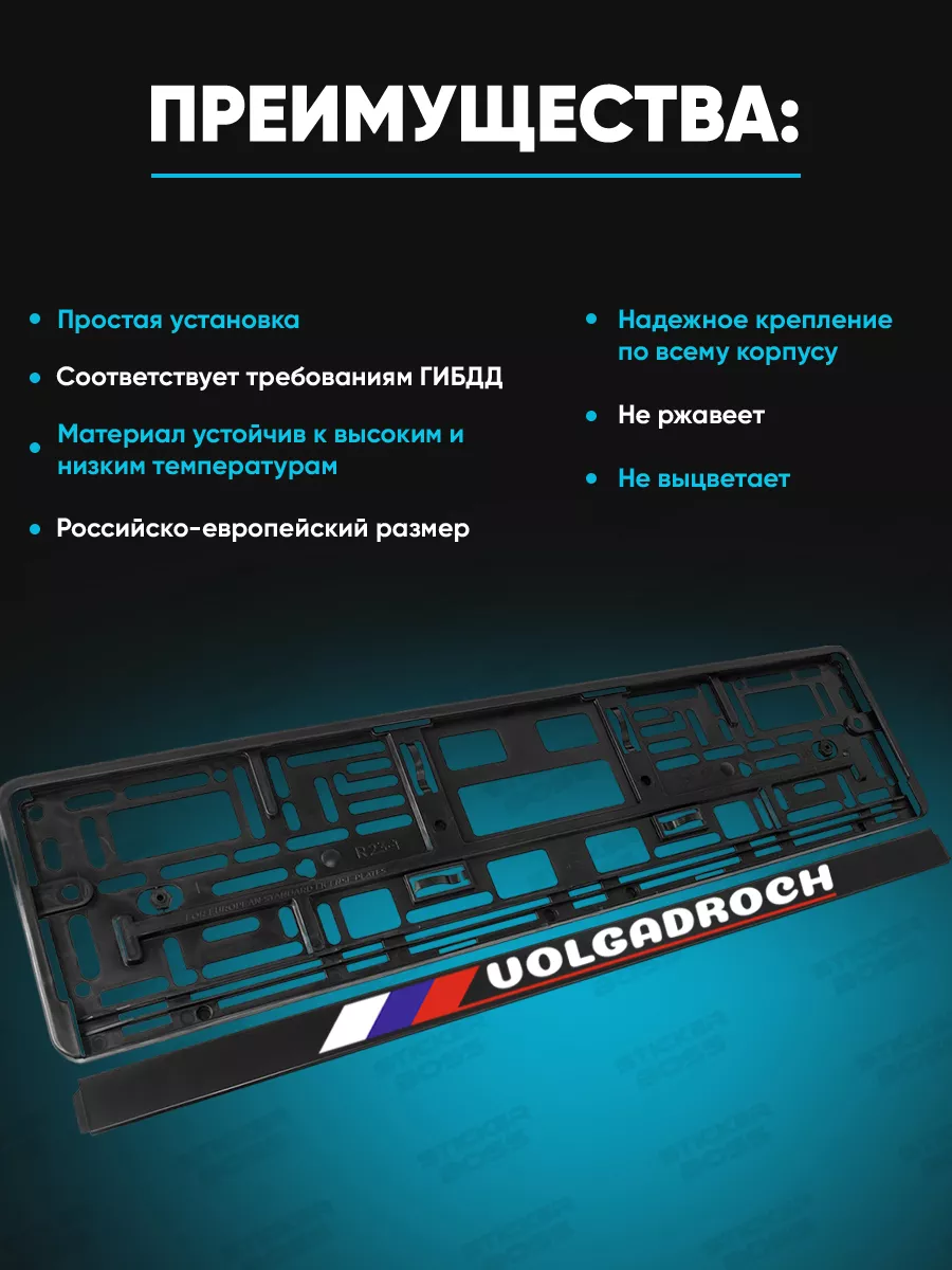 Универсальная рамка для гос номера 52х13х1 см из абс-пластика обеспечивает защиту и стиль номерного знака на большинстве автомобилей. Печатная графика на лицевой стороне выполнена УФ-печатью, стойкая к погодным условиям и не выгорает со временем. Принты и надписи выполнены в лучших традициях бренда Stickerboss, что привлекает внимание к вашему автомобилю.