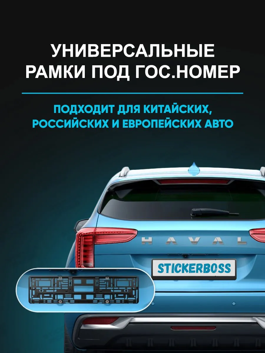 Универсальная рамка для гос номера автомобиля размер 52х13х1 см изготовлена из ABS-пластика. Лицевая сторона украшена УФ-печатью, которая устойчива к погодным условиям и не выгорает со временем. Этот комплект из двух рамок подходит почти под любую марку авто и соответствует требованиям ГИБДД, имея российско-европейский размер. Рамки легко устанавливаются и добавляют стиль вашему автомобилю.