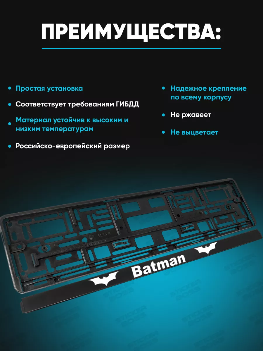 Эта пара рамок для гос номера предназначена для автомобилистов, ценящих стиль и практичность. Рамки выполнены из ABS-пластика и украшены принтом Batman, изготовленным с использованием УФ-печати. Материал устойчив к погодным условиям и выцветанию, что обеспечивает долгий срок службы даже в суровых условиях эксплуатации. Размер рамок 52×13×1 см, конструкция соответствует требованиям ГИБДД и подходит для российского и европейского размера. В комплект входит две рамки, которые можно устанавливать на передний и/или задний номер, обеспечивая надежное и стильное крепление.