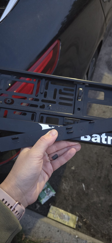 - Поместите рамку на номер и выровняйте отверстия крепления.