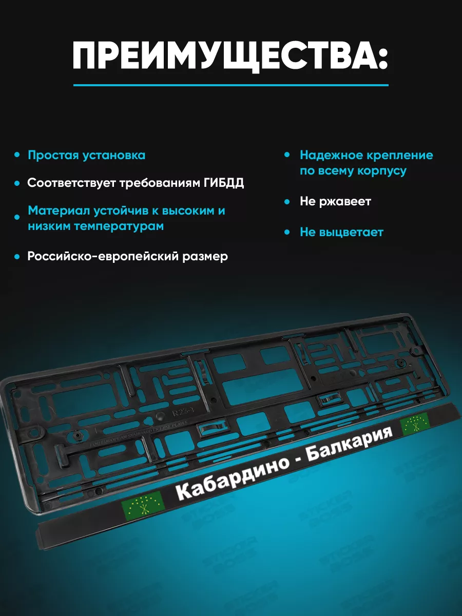 Рамка для гос номера обеспечивает надежное крепление и аккуратный внешний вид вашего автомобиля. Изготовлена из abs-пластика с лицевой стороной, на которой применена УФ-печать, устойчивая к погодным условиям и не выцветает со временем.