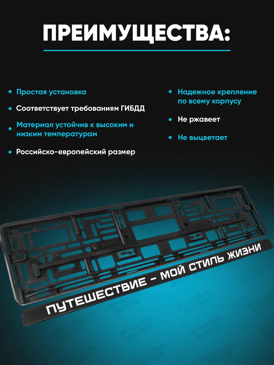 Доставка по России осуществляется без задержек; доступны все популярные способы оплаты. Оформляйте заказ — и рамки для номеров будут у вас в кратчайшие сроки.
