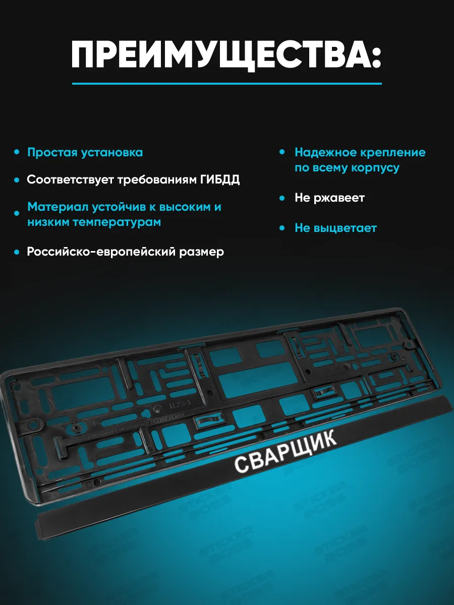 Рамка для гос номера 2 шт сварщик — практичный автомобильный аксессуар, который обеспечивает надежную фиксацию номера и придает автомобилю индивидуальный внешний вид. Рамки изготовлены из ABS-пластика и защищены ультрафиолетовой печатью, благодаря чему надписи и изображения сохраняют яркость под воздействием солнца и осадков. В комплект входит две рамки, что упрощает установку и обеспечивает симметричную презентацию номера.