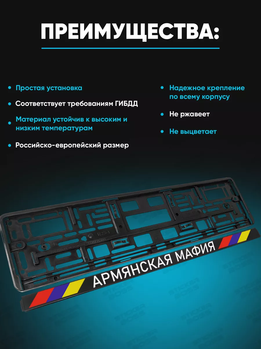 Эта рамка для гос номера обеспечивает практичное сочетание стиля и надёжности. Изготовлена из ABS-пластика, имеет универсальные размеры 52×13 см и подходит под большинство автомобилей. Принты выполнены печатью УФ-методом, что обеспечивает стойкость к солнечному свету, дождю и перепадам температур. Бренд Stickerboss задаёт стиль и высокое качество исполнения. Рамка не только крепит номер, но и подчеркивает дизайн автомобиля.
