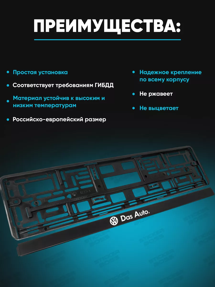 Преимущества рамки для гос номера очевидны: она выполнена из ABS-пластика высокого качества, имеет универсальные размеры 52x13x1 см и рассчитана на большинство марок автомобилей. На лицевой стороне применена УФ-печать, устойчивая к солнечному свету и другим условиям эксплуатации, не выцветает со временем. Принты и надписи выполнены в стиле Stickerboss, что добавляет автомобилю индивидуальности. Рамка не только крепит номер, но и дополняет стиль машины. Легко устанавливается: механическое крепление надежно держит номерной знак. Такой товар может стать приятным подарком другу. Соответствует требованиям ГИБДД и российско-европейскому размеру номера. В каталоге Stickerboss можно выбрать рамку с нужной надписью, перейдя в наш магазин.