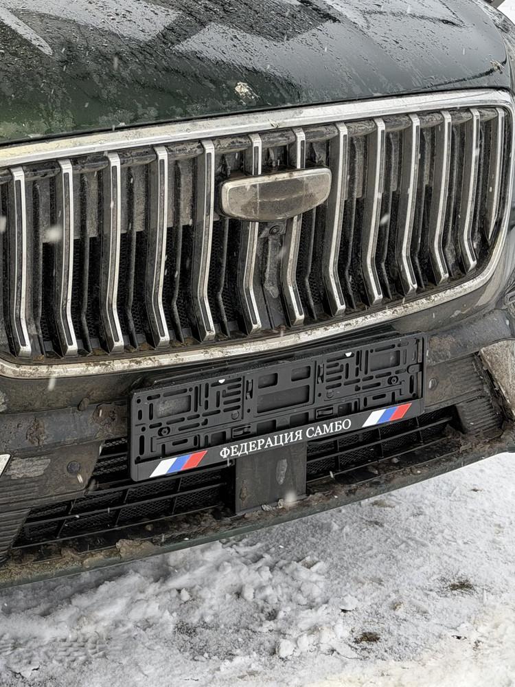Установка проста: рамка плотно прилегает к бамперу и фиксируется креплением. Подходит под российско-европейский размер номера.
