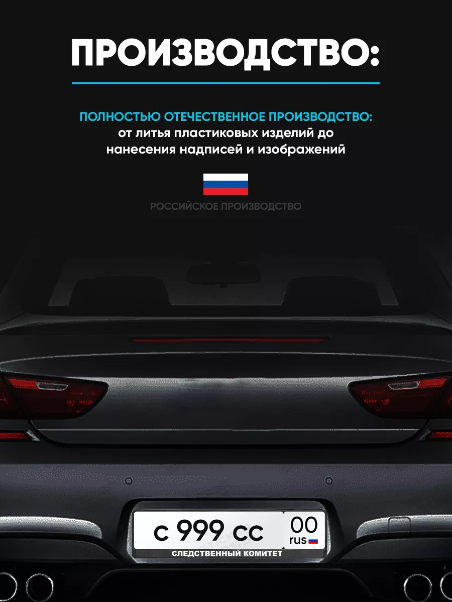 Рама для гос номера с надписью Следственный комитет арт.0031 предлагает функциональность и стиль в одном изделии. Изготовлена из ABS-пластика и рассчитана на стандартный российско-европейский размер номерного знака. УФ-печать на лицевой стороне обеспечивает яркий рисунок, устойчивый к ультрафиолету и влаге, со временем не выцветает. Нейтральный черный цвет и лаконичный дизайн подходят к автомобилю любого цвета.