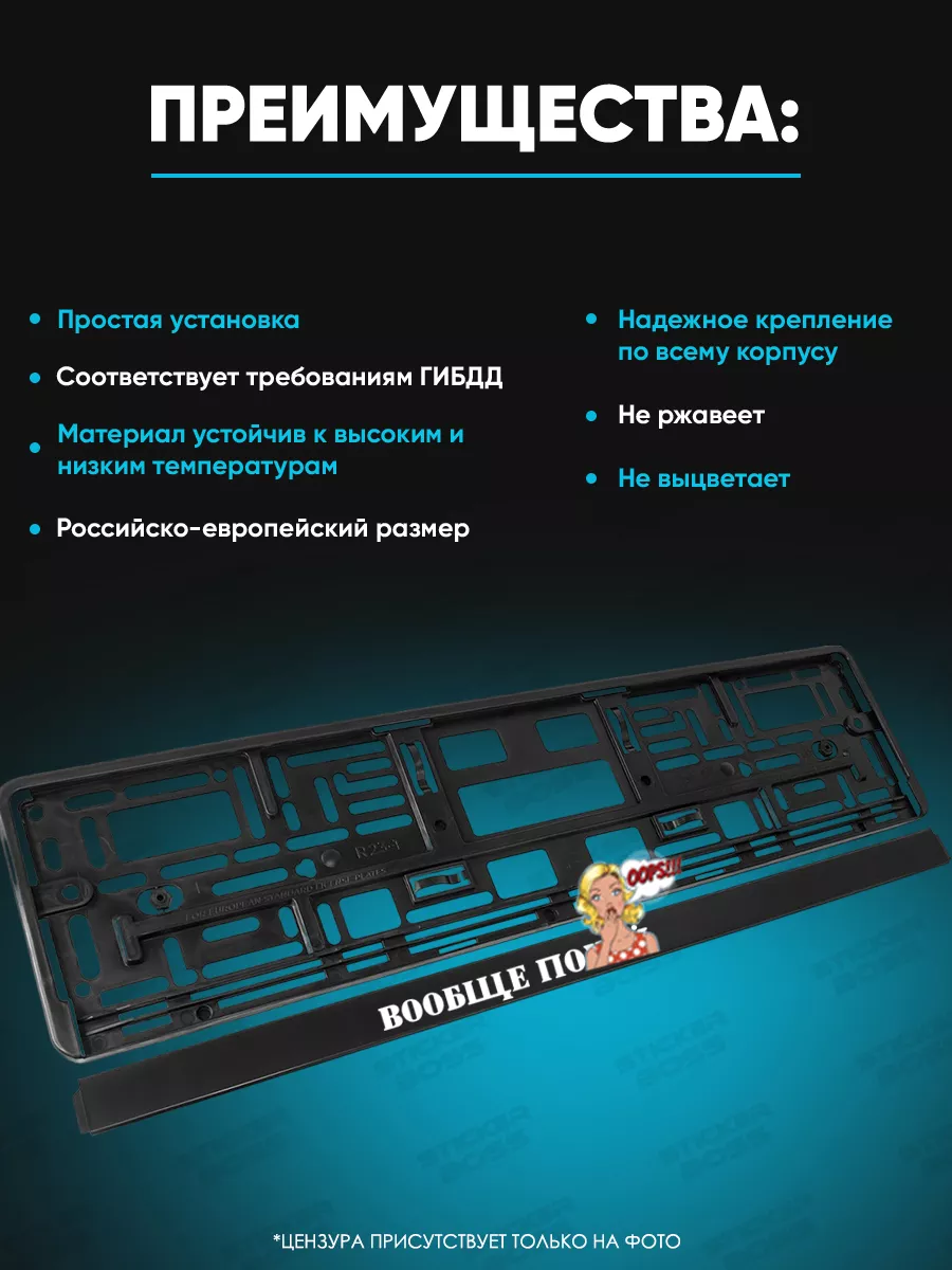 Универсальная рамка для гос номера из ABS-пластика подходит под большинство автомобилей. Лицевая сторона выполнена качественной УФ-печатью, устойчива к выцветанию и погодным условиям. Рамка сочетает функциональность крепления номера и стильный внешний вид в духе бренда Stickerboss.