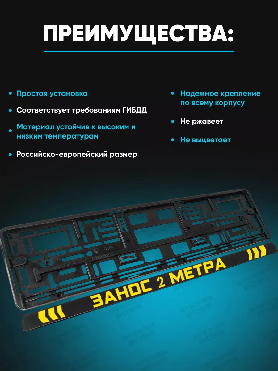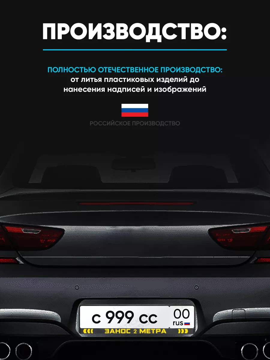 Универсальная рамка для гос номера, выполненная из ABS-пластика, обеспечивает надежное крепление и стильный вид вашего автомобиля. Размер 52x13x1 см обеспечивает совместимость с российско-европейским размером номеров, а УФ-печать сохраняет яркость изображения в любых условиях.
