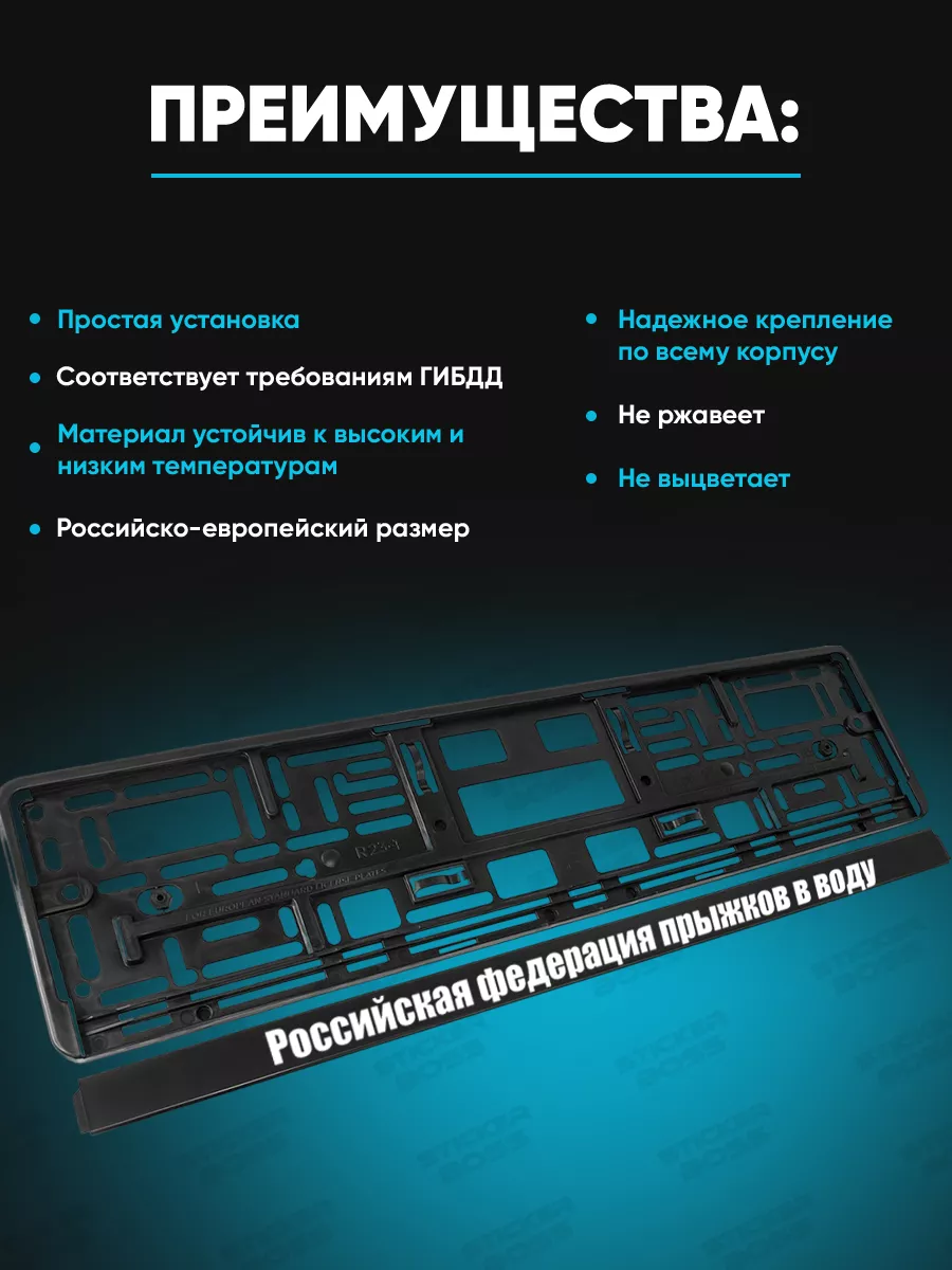 Универсальная рамка для госномеров размером 52×13 см изготовлена из ABS-пластика. Нанесение лицевой стороны выполнено УФ-печатью и обеспечивает стойкость к погодным условиям, не выцветает со временем. Простой монтаж и стильный внешний вид дополняют авто.