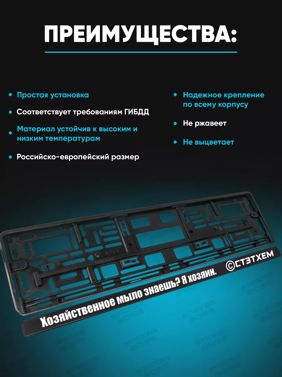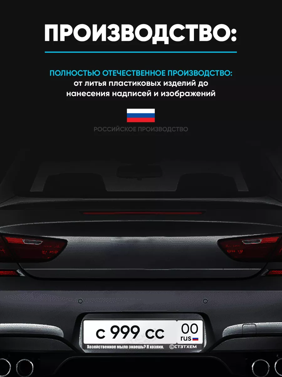 Универсальная рамка для гос номера автомобиля обеспечивает защиту номера и добавляет стиль вашему авто. Изготовлена из ABS-пластика и снабжена качественной УФ-печатью, которая не выгорает под солнцем и выдерживает суровые погодные условия. Конструкция соответствует требованиям ГИБДД и имеет российско-европейский размер. Рамка подходит почти для любой марки автомобиля. Легко устанавливается — крепление механическое обеспечивает надежное прилегание к бамперу и длительный срок службы. Это отличный выбор для подарка другу или себе.