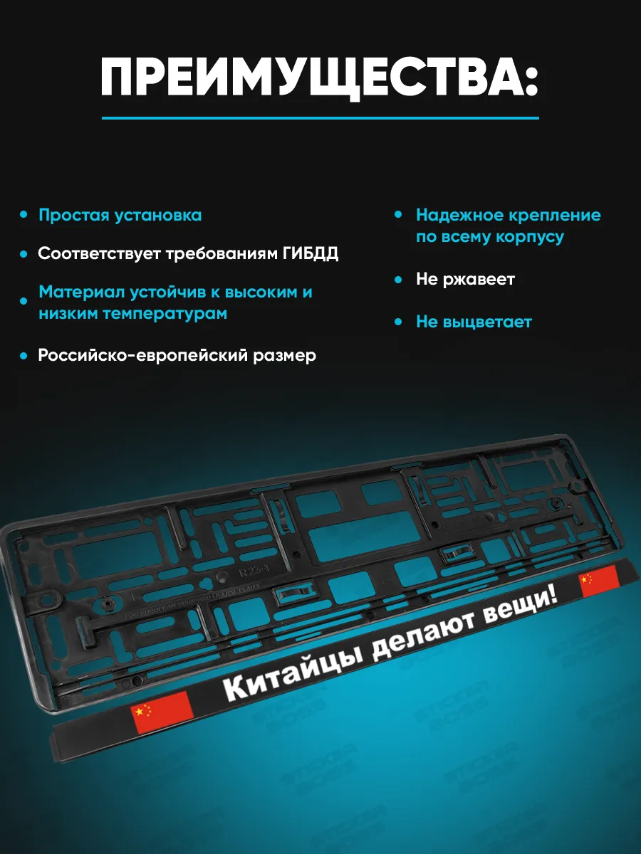 Эта рамка для номерного знака изготовлена из ABS-пластика и рассчитана на установку на автомобили в рамках российского и европейского размера. Лицевая сторона выполнена с ультрафиолетовой печатью, устойчива к погодным условиям и не выцветает со временем. Рамка подходит практически для любой марки авто и добавляет стиль кузову, оставаясь функциональной деталью.