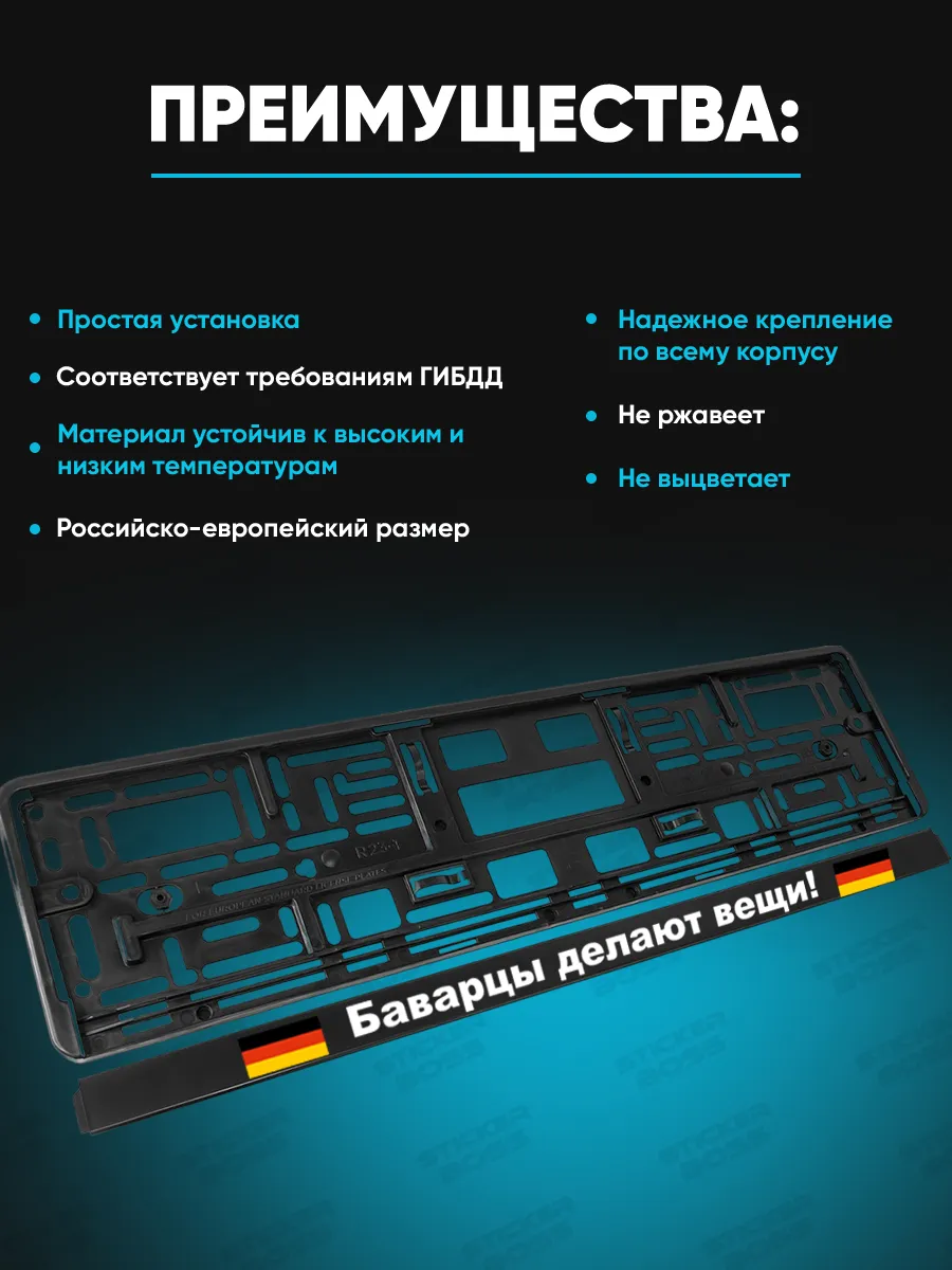 Рамка для номера 52×13×1 см изготовлена из ABS-пластика и рассчитана на долговечность в любых погодных условиях. Она подходит практически для любой марки автомобиля, обеспечивает крепление номерного знака и стильный вид. На лицевой стороне применяется УФ-печать, сохраняющая яркость принтов и надписей Stickerboss со временем. Конструкция соответствует требованиям ГИБДД и имеет российско-европейский размер. В каталоге Stickerboss можно выбрать вариант с надписью по вкусу. Автомобильный аксессуар не боится дождя, снега и перепадов температур. Также можно подобрать другие товары для авто в нашем магазине. Доставка по РФ осуществляется оперативно и без лишних хлопот.