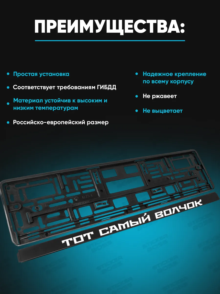Эта рамка для номера обеспечивает стильный и надежный вид вашему автомобилю. Изготовлена из ABS-пластика и рассчитана на широкий диапазон маркировок благодаря размеру 52×13×1 см. Принты и надписи выполнены в лучших традициях Stickerboss, UV‑печать устойчива к солнечному свету, дождю и перепадам температур.