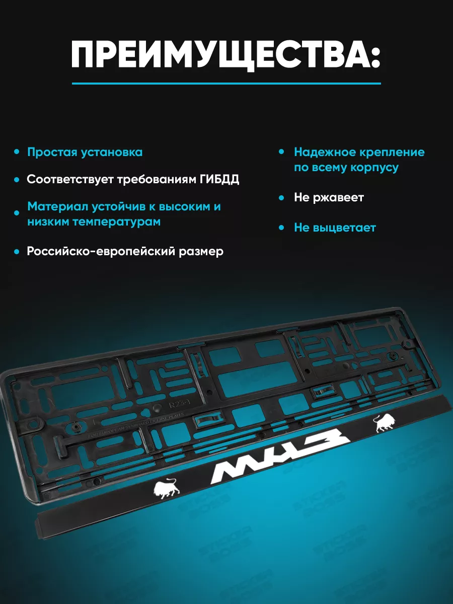 Эта рамка предназначена для фиксации госномера на большинстве легковых автомобилей. Она изготовлена из качественного ABS-пластика и имеет универсальный размер 52x13 см. Лицевая сторона рамки выполнена УФ-печатью, ударостойкой и стойкой к погодным условиям, поэтому принты не выцветают и не выгорают со временем. Дизайн выполнен в духе Stickerboss, что подчеркивает стиль автомобиля. Рамка не только обеспечивает крепление номера, но и добавляет автомобилю индивидуальности. Она подходит для эксплуатации в любых климатических условиях и соответствует требованиям ГИБДД.